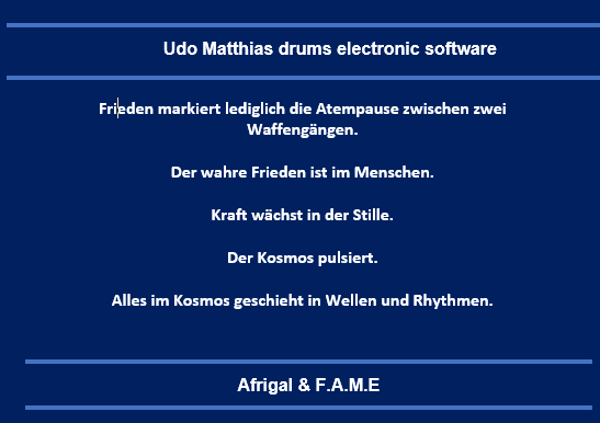 Ich mache (mit Afrigal) elektronische Klangmusik, Electronic Soundmusic. Sound heißt nicht nur Klang, es heißt auch „heil“. Für alle Musik, sei sie nun