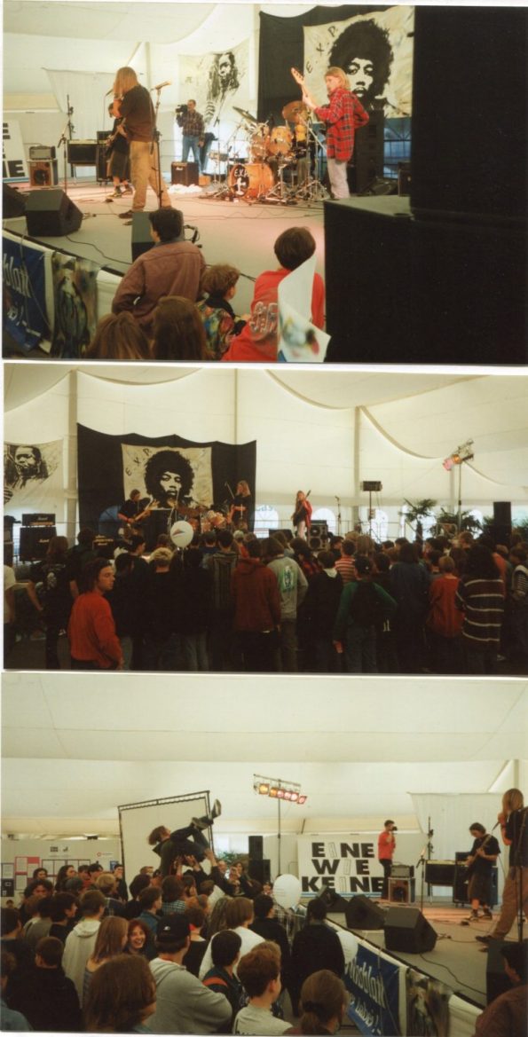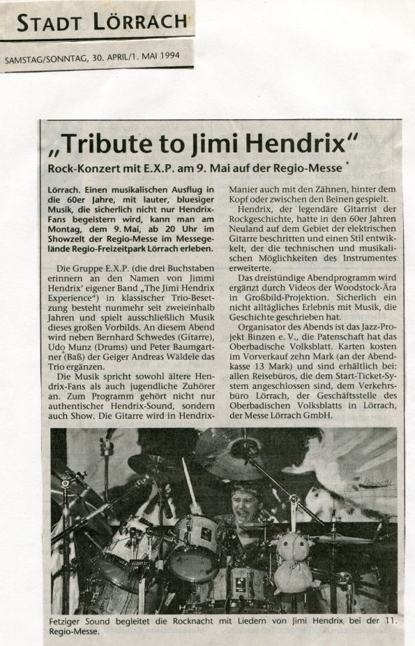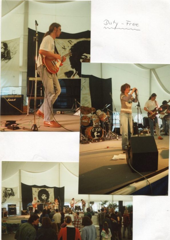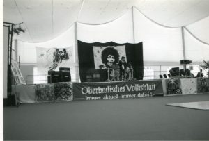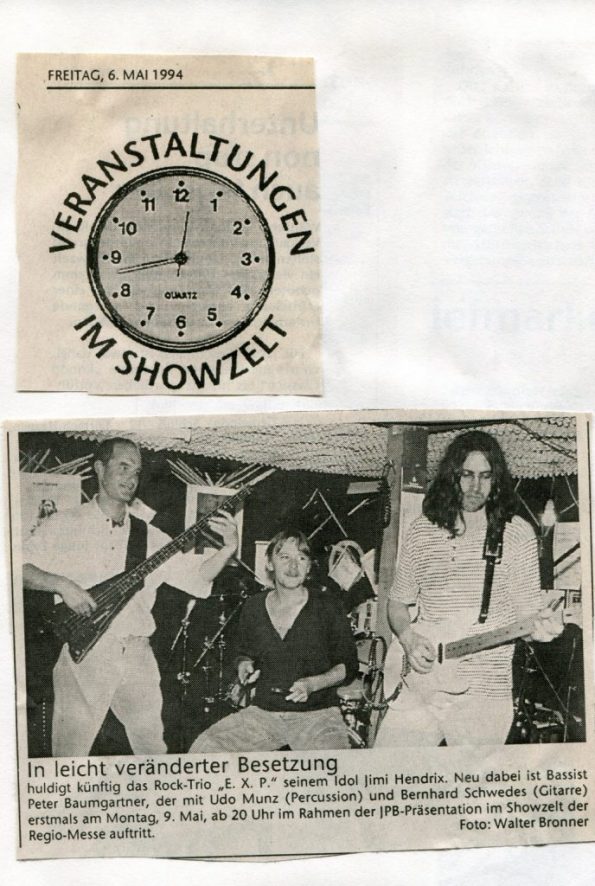 Erstes EXP- Konzert (heute MAXOOM) – Bernhard Justus -guitar – Karl Obernitz – bass Udo Matthias – drums – Walter Schneider – Mischpult (Sound) Bernhard Justus guitar – Udo Matthias – drums – Backdrop – Mike Brombacher (Fischingen)