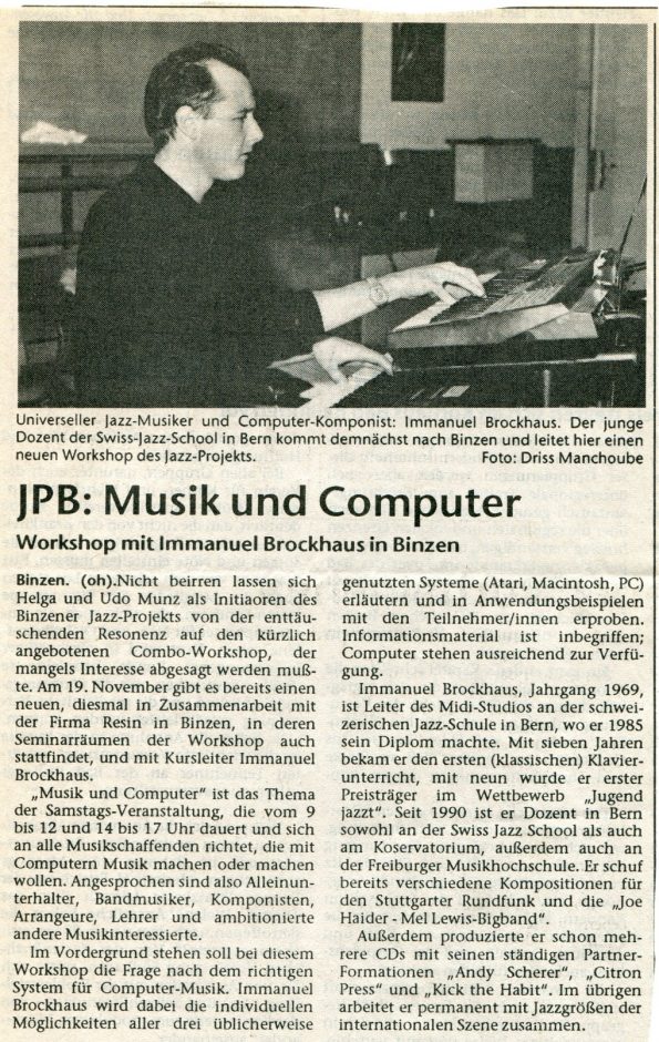 Frieder Lang -piano war für eine längere Zeit ein guter Weggefährte (1992) und für mich einer der besten Musiker unserer Region und einer wirklich soliden Ausbildung mit Masterclass an der Swiss Jazz School Bern.. Er unterrichtete lange Zeit am Jazz-Campus Basel.