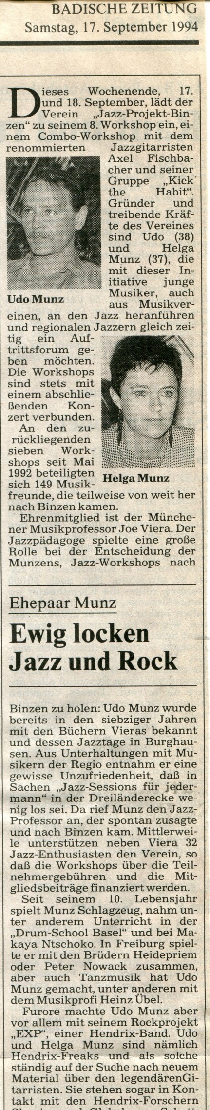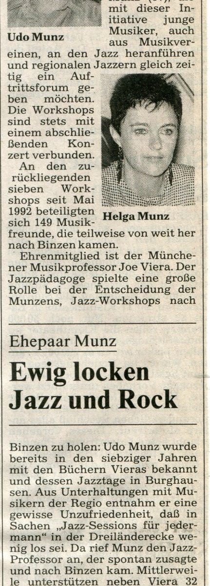 Meine Frau (Helga Munz geb.Herbster – gest. 13.06.2024) und ich haben Workshops mit einem der ersten wirklichen Musikpädagogen Deutschlands und Begründer der Jazzwoche Burghausen angeboten.