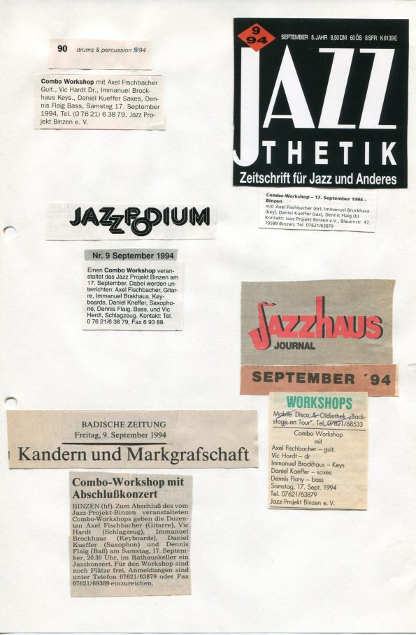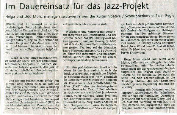 Wir wollten und haben eine Zeit lang Jazzmusiker aus Deutschland nach Binzen geholt und Workshops angeboten. Das ganze eingenommene Geld ging alles an die Musiker. Unserer Meinung nach gibt es unzählige hervorragender Jazzmusiker in Deutschland und da braucht es nicht zwingend Workshops mit amerikanischen Künstlern.