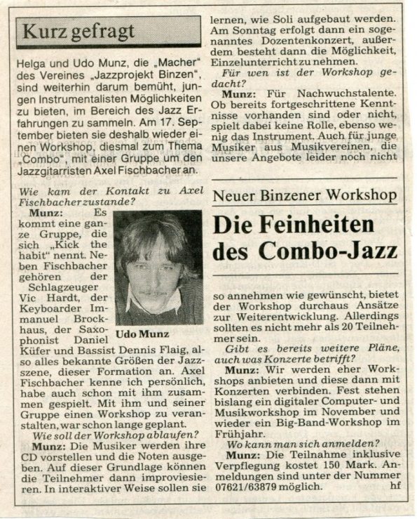 Meine Frau (Helga Munz geb.Herbster – gest. 13.06.2024) und ich haben Workshops mit einem der ersten wirklichen Musikpädagogen Deutschlands und Begründer der Jazzwoche Burghausen angeboten.