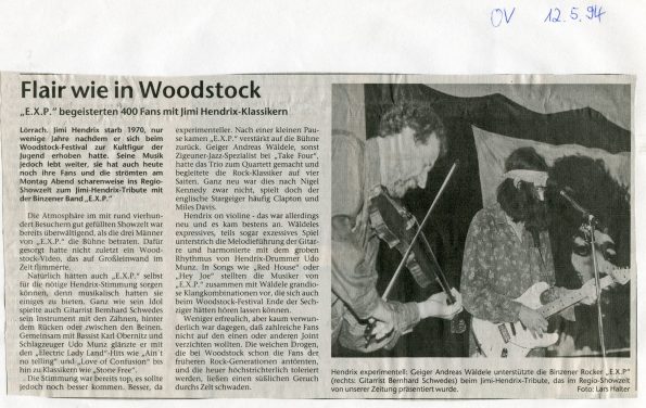 Erstes EXP- Konzert (heute MAXOOM) – Bernhard Justus -guitar – Karl Obernitz – bass Udo Matthias – drums – Walter Schneider – Mischpult (Sound) Bernhard Justus guitar – Udo Matthias – drums – Backdrop – Mike Brombacher (Fischingen)