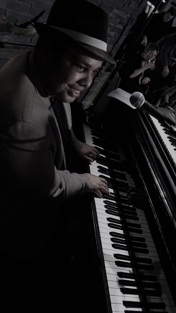 auswendig, aus dem Bauch heraus. Sein Markenzeichen gute Musik & Humor.